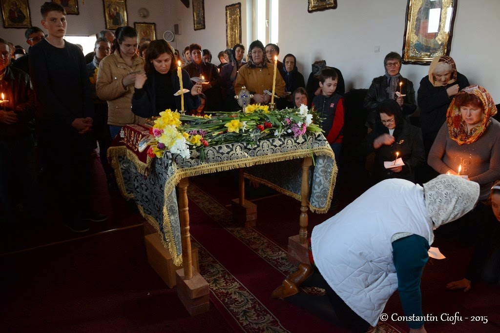 În Duminica a 2-adin Postul Mare, în paraclisul parohiei noastre a fost oficiată Sfânta Liturghie, în prezenţa credincioşilor de toate vârstele. Numeroşi enoriaşi s-au împărtăşit cu Trupul şi Sângele Mântuitorului Hristos. La finalul slujbei, părintele Mihai Coman, slujitor la acest sfânt locaş, a amintit că pe 7 martie 2015, Parohia “Sfinţii Arhangheli” – Canta a oferit 200 de pachete consistente pacienţilor din Secţia Bârnova a Spitalului Socola din Iaşi. Credincioşii au fost îndemnaţi să pregătească şi în sâmbetele următoare daruri pentru bolnavii de la Bârnova, astfel încât rugăciunea şi postul să fie completate de milostenie, care este cea mai scurtă cale spre rai.vian34