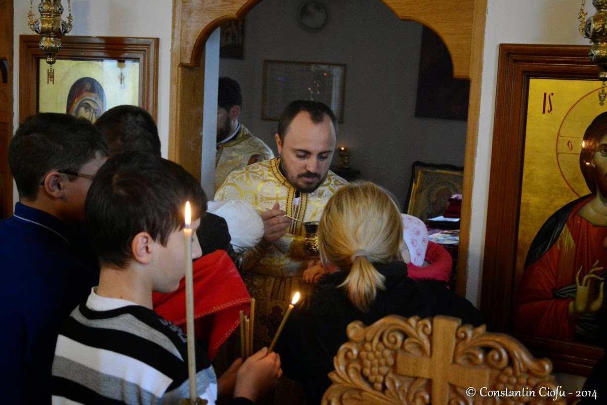 În paraclisul parohiei noastre a fost oficiată duminică, 22 februarie 2015, Sfânta Liturghie de către pr. paroh Ioan Damian şi de pr. slujitor Mihai Coman. Predica Duminicii Izgonirii lui Adam din Rai a fost rostită de pr. Mihai Coman, care a menţionat că în această zi este marcat momentul istoric al alungării din rai al primilor oameni. În acelaşi timp, pr. Mihai Coman a menţionat că de începând de luni, 23 februarie 2015, până joi, 26 februarie 2015, în paraclisul parohiei se va oficia, de la ora 17:00, Slujba Canonului Sfântului Andrei Criteanul, care va fi urmat de Pavecerniţa Mare. Apoi, Preacucernicia Sa a mai adăugat că vineri, 27 februarie 2015, de la ora 6:00 dimineaţă se va săvârşi Sfânta Liturghie a Darurilor mai înainte Sfinţite. Această slujbă va fi oficiată în paraclisul parohiei pe toată perioada postului în fiecare vineri. În cuvântul adresat celor prezenţi s-a făcut referire la cererea pe care trebuie să o completeze părinţii din parohie pentru ca elevii să poată studia ora de religie. De asemenea, s-a amintit de perioada Postului Mare, ce îl pregăteşte pe credincios pentru noaptea Sfintelor Paşti.focuz