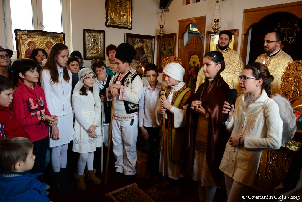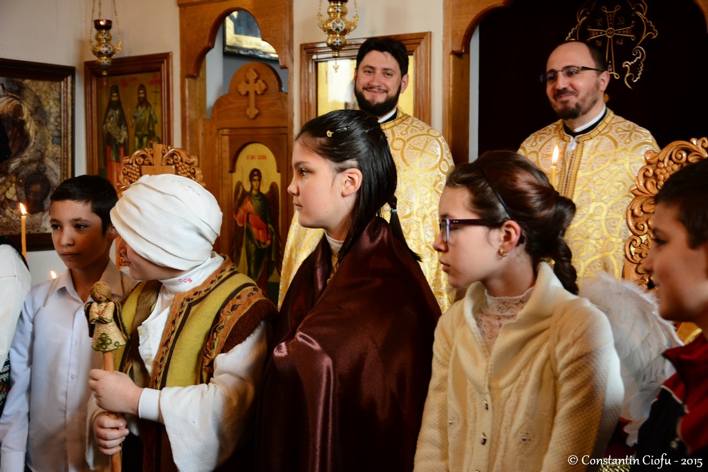 Elevii de la Şcoala Generală „Elena Cuza” din Iaşi au prezentat duminică, 13 decembrie 2015, un program artistic în paraclisul Parohiei „Sfinţii Arhangheli Mihail şi Gavriil” – Canta din Iaşi. Acesta s-a intitulat “Spre Betleem, colindăm cu bucurie” şi a făcut parte din proiectul judeţean “Îngeri de primăvară”, coordonat de prof. Fulvia Horobeţ şi de prof. Adrian Chiorescu de la Şcoala “Elena Cuza”. La finalul evenimentului, preotul paroh Ioan Damian a mulţumit copiilor şi coordonatorilor acestora pentru darul oferit, remarcând că „rodul muncii părinţilor, profesorilor şi al bunicilor nu rămâne fără o satisfacţie”. „Aţi reuşit să ne înveşmântaţi sufletele în atmosfera festivă a sărbătorilor Naşterii Domnului. Vă dorim mulţi ani cu multe realizări pe parcursul vieţii voastre”, a spus preotul paroh Ioan Damian. Copiii au primit la final câte un dar din partea Parohiei „Sfinţii Arhangheli Mihail şi Gavriil” – Canta din Iaşi. (C. Ciofu)